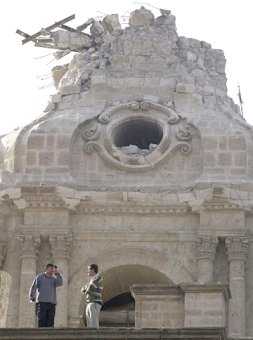 DAÑOS A CATEDRAL INSPIRA ESPÍRITU DE AREQUIPEÑOS Para los arequipeños, siempre orgullosos de su origen y de su tierra natal, ver su hermosa Catedral del siglo XVII herida por la caída de una de sus torres, es uno de los peores castigos del fuerte terremoto que sacudió su región el fin de semana. En esta